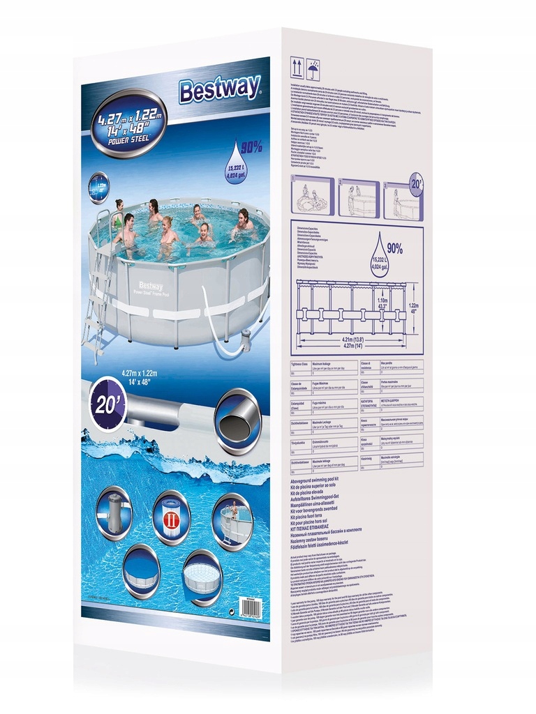 Установка каркасного бассейна Bestway 56444 максимально простая. Нужна лишь плоская горизонтальная поверхность. Нет необходимости в бетонировании площадки или подготовки ямы для последующего заглубления. Процесс сборки бассейна до наполнения водой занимает 60 минут.