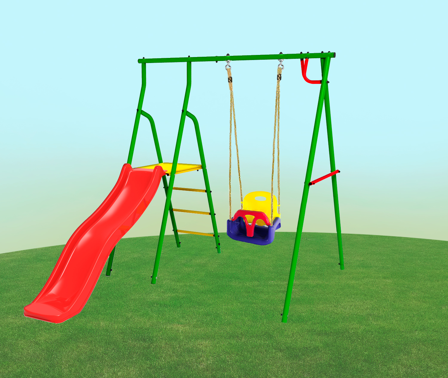 — Комплектация: горка пластиковая 1,6 м, подвесные детские качели 3в1