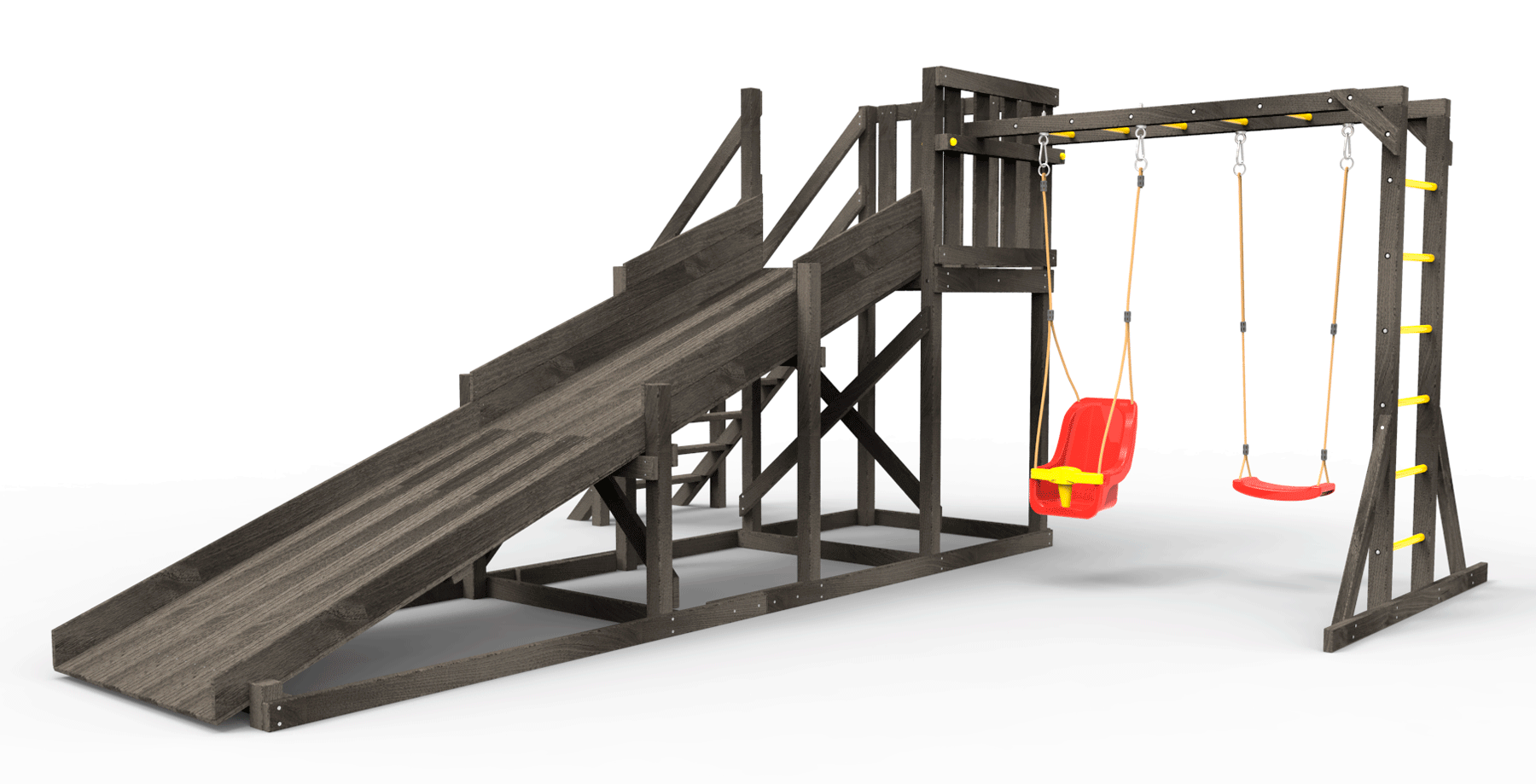 Обращаем Ваше внимание, что фактический цвет детской площадки может отличаться от представленных фото на сайте. Специфика окраски нетоксичными пропитками и красителями допускает отклонения в цветовой гамме отгружаемых изделий. Также обратите внимание, что фактический цвет может отличаться из-за цветопередачи устройства на котором Вы смотрите фото.