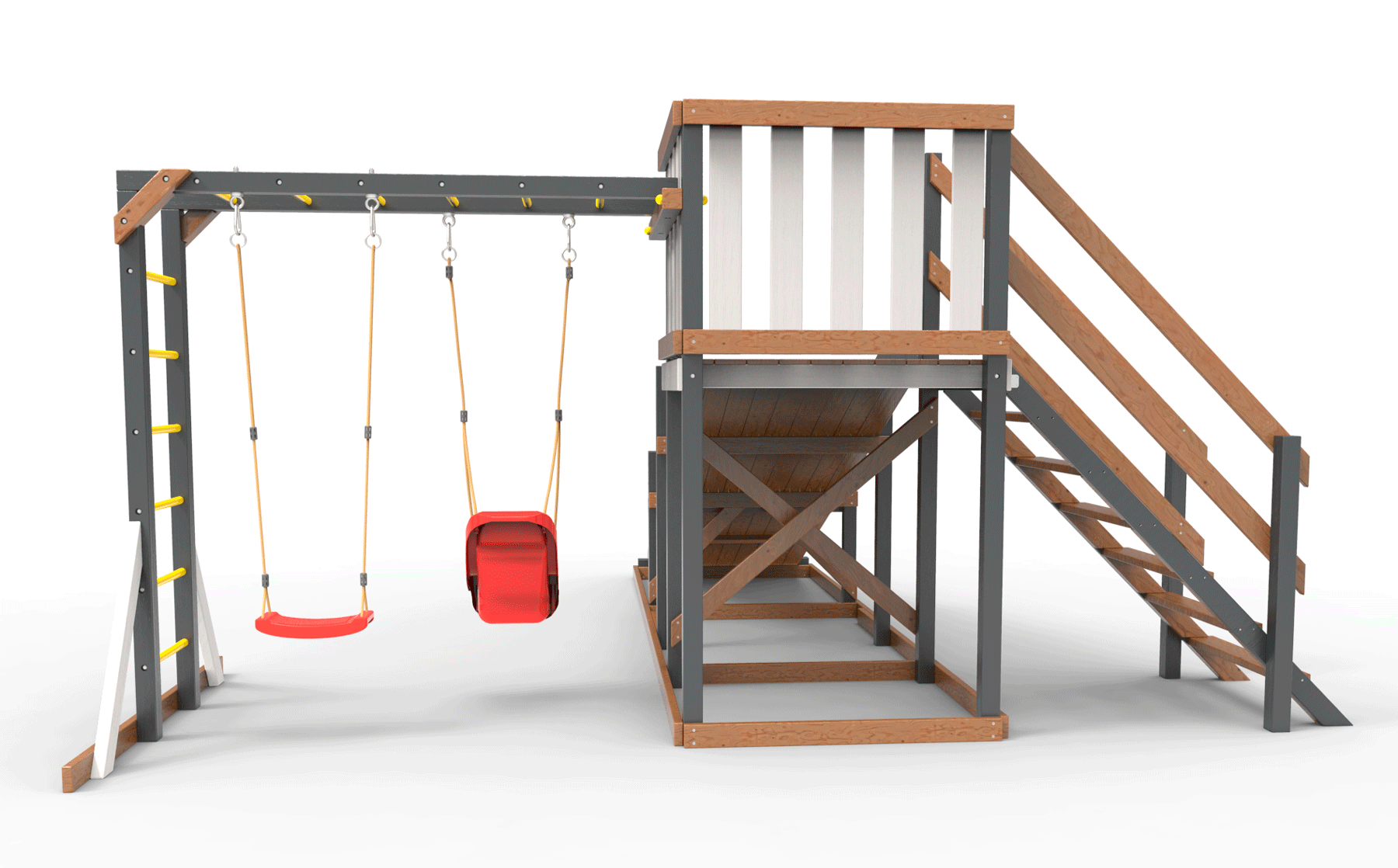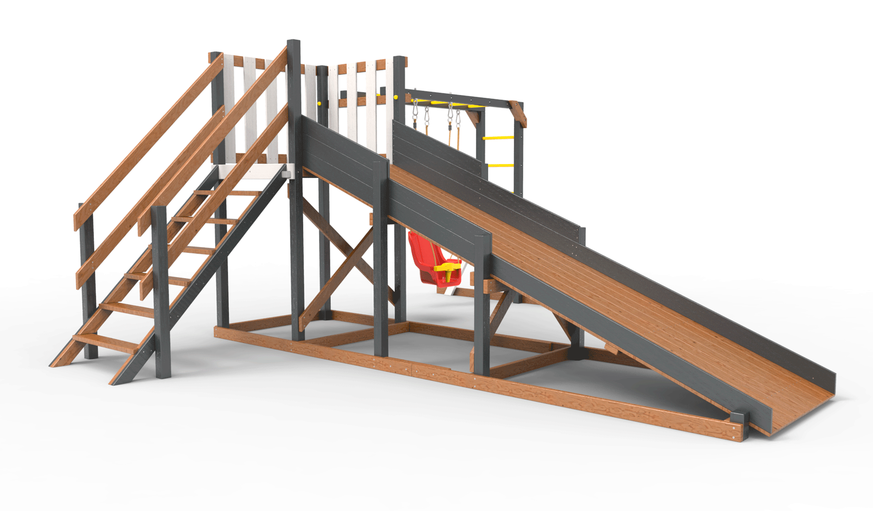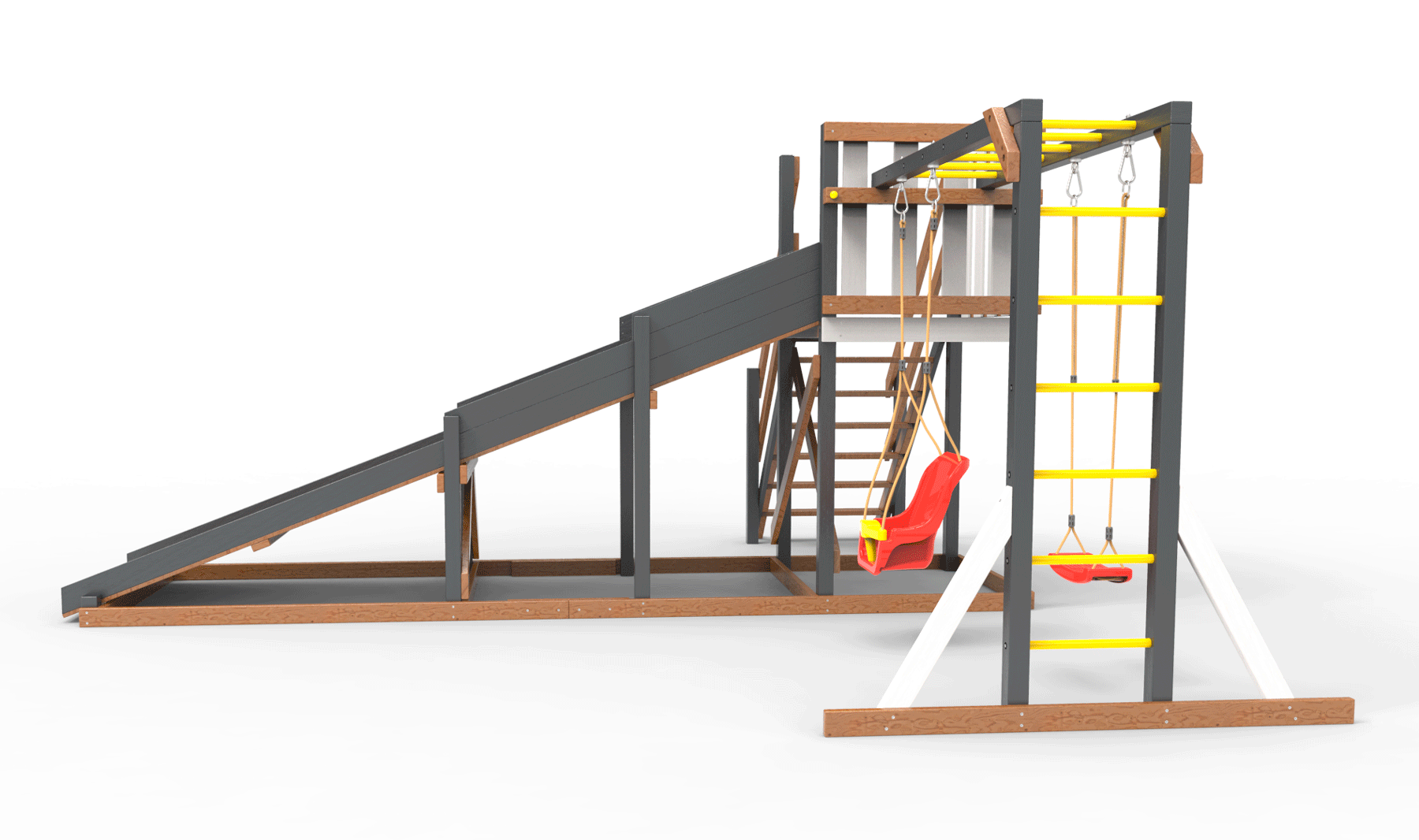 Обращаем Ваше внимание, что фактический цвет детской площадки может отличаться от представленных фото на сайте. Специфика окраски нетоксичными пропитками и красителями допускает отклонения в цветовой гамме отгружаемых изделий. Также обратите внимание, что фактический цвет может отличаться из-за цветопередачи устройства на котором Вы смотрите фото.