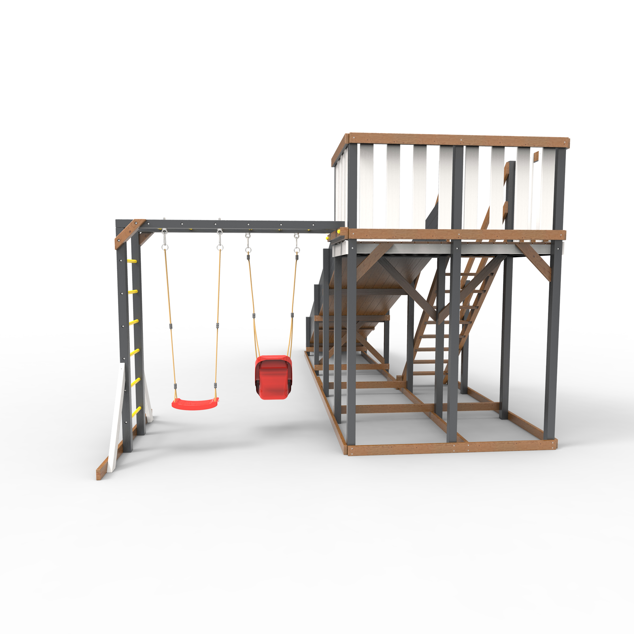 Обращаем Ваше внимание, что фактический цвет детской площадки может отличаться от представленных фото на сайте. Специфика окраски нетоксичными пропитками и красителями допускает отклонения в цветовой гамме отгружаемых изделий. Также обратите внимание, что фактический цвет может отличаться из-за цветопередачи устройства на котором Вы смотрите фото.