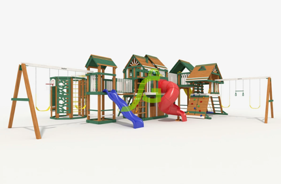- - дополнительный модуль со спортивным комплексом IgraGrad Workout, в комплектацию которого входят: веревочная лестница, "стена альпиниста", два скалодрома разных размеров с канатами, баскетбольное кольцо, "обезьянья тропа" и лестницы;