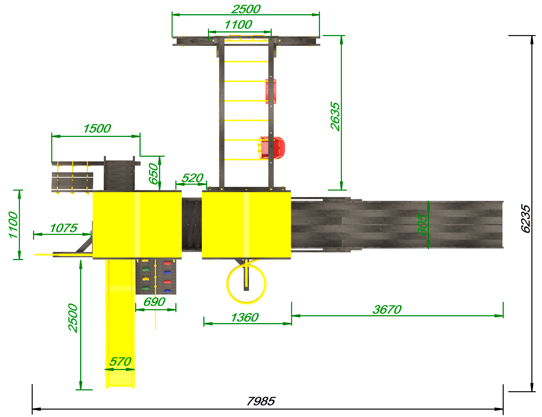 Обращаем Ваше внимание, что фактический цвет детской площадки может отличаться от представленных фото на сайте. Специфика окраски нетоксичными пропитками и красителями допускает отклонения в цветовой гамме отгружаемых изделий. Также обратите внимание, что фактический цвет может отличаться из-за цветопередачи устройства на котором Вы смотрите фото.