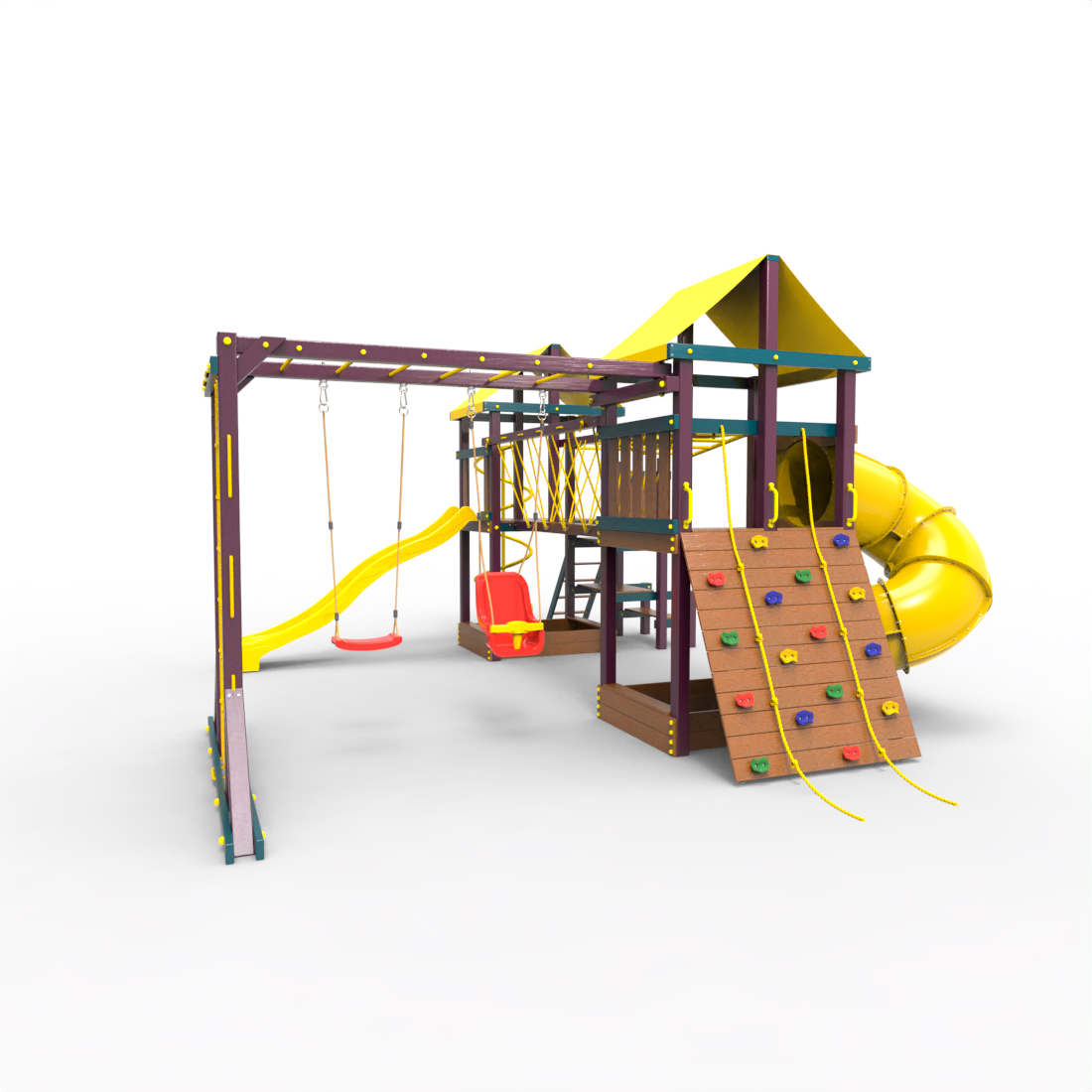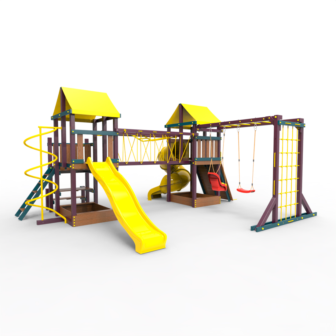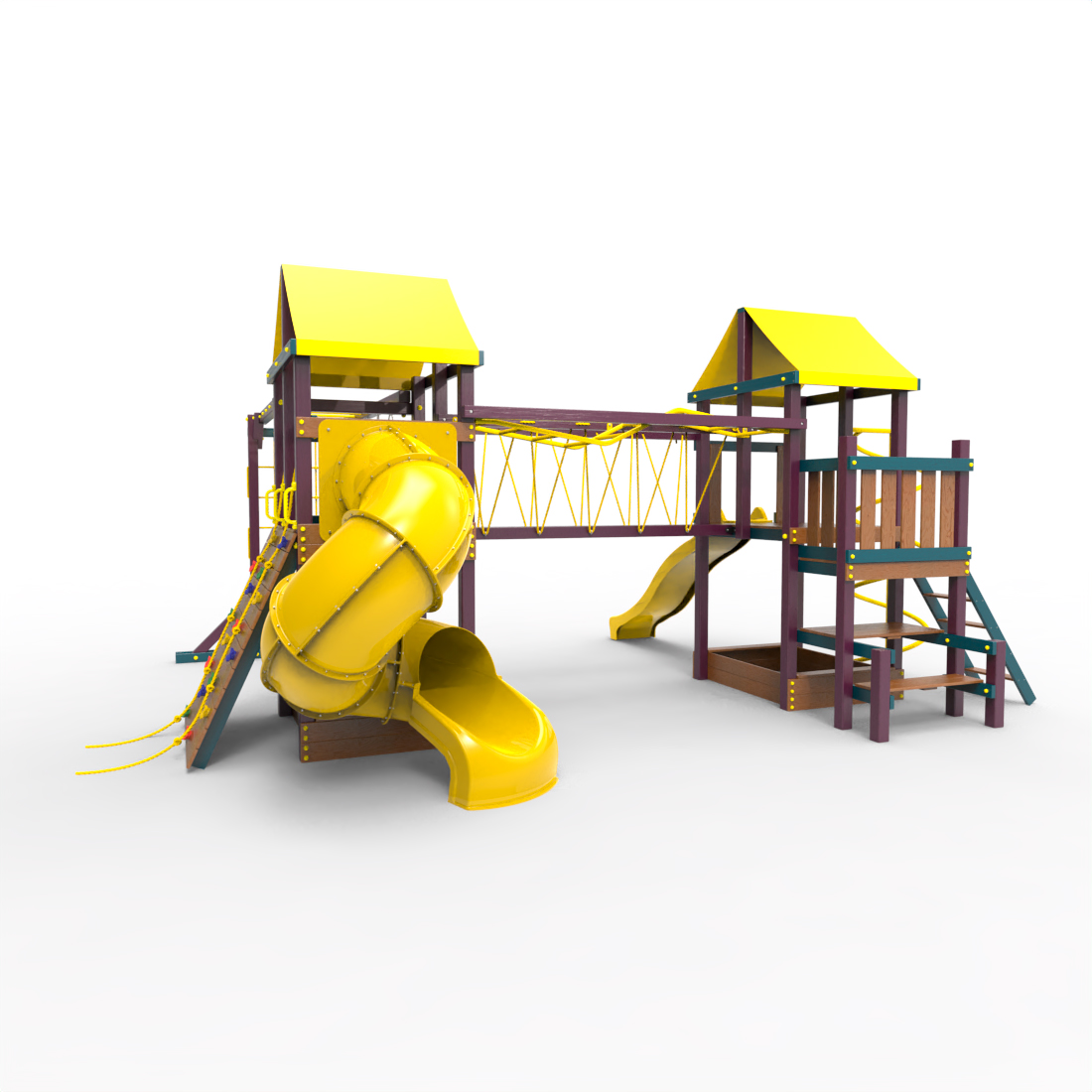 | Комплектация | Два домика|Песочница|Лестница|Шторм-трап|Скалодром|Рукоход|Руфер|Балкон|Столик с лавочками|Подвесной мост|Горка|Спираль|Сеть для лазания|Качели|Заливная горка|ЗигЗаг|Переправа |