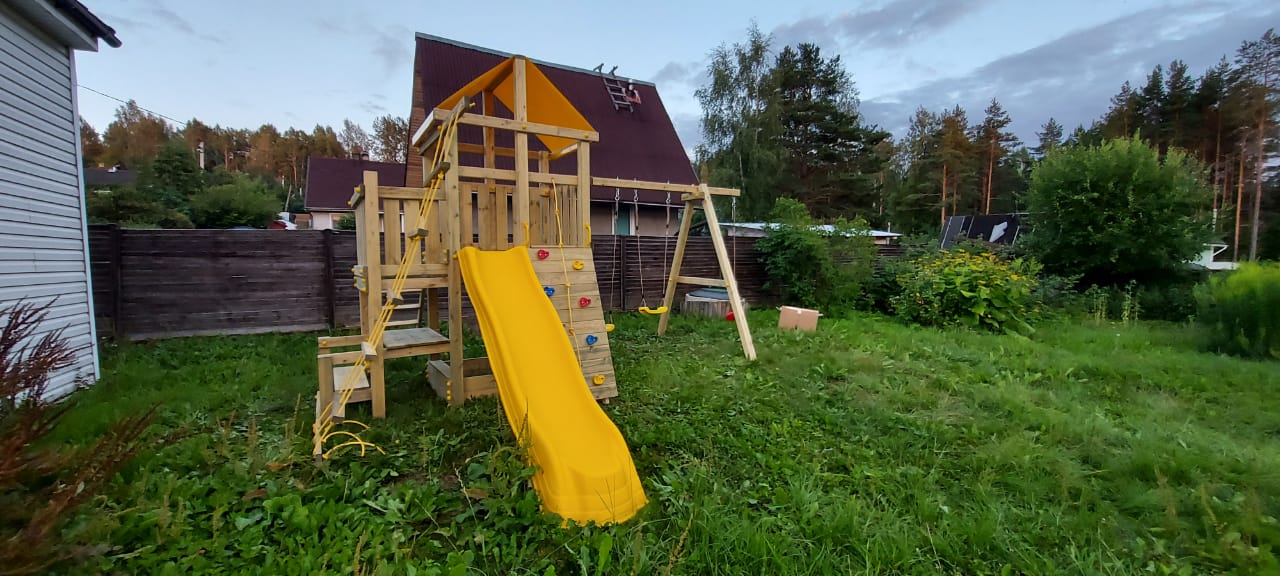 Обращаем Ваше внимание, что фактический цвет детской площадки может отличаться от представленных фото на сайте. Специфика окраски нетоксичными пропитками и красителями допускает отклонения в цветовой гамме отгружаемых изделий. Также обратите внимание, что фактический цвет может отличаться из-за цветопередачи устройства на котором Вы смотрите фото.