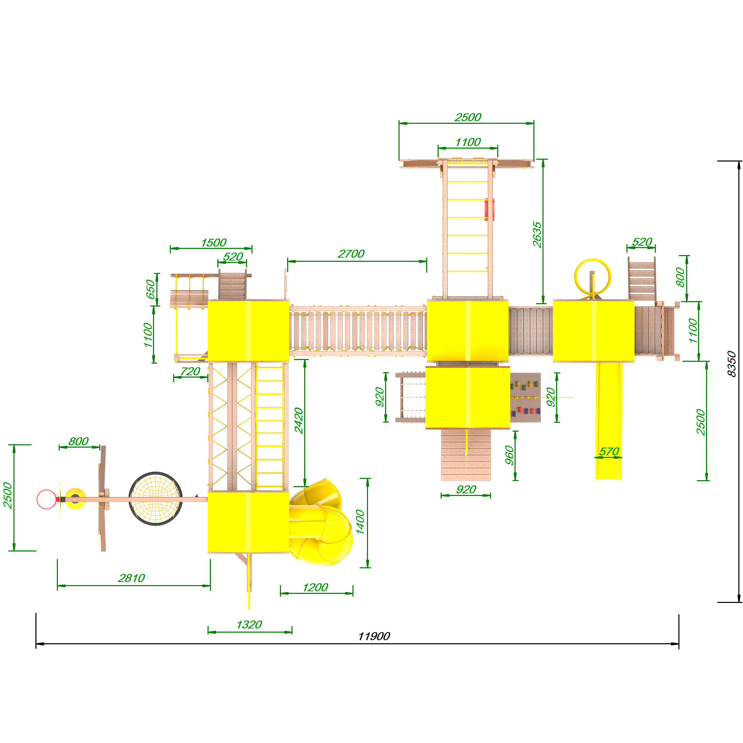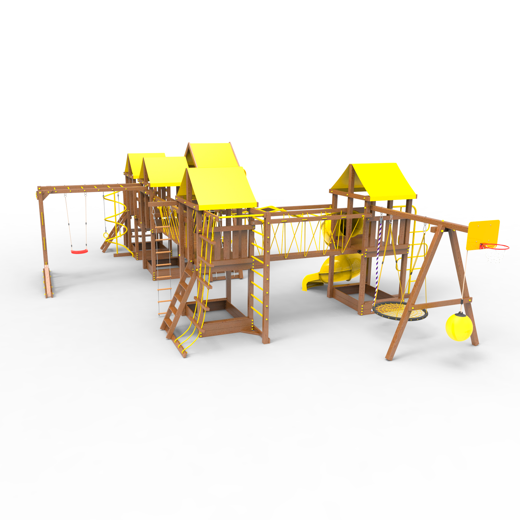 | Комплектация | Высокий домик|Два домика|Песочница|Лестница|Шторм-трап|Скалодром|Шведская стенка|Рукоход|Турник|Руфер|Балкон|Столик с лавочками|Баскетбольная корзина|Мостик|Подвесной мост|Горка|Винтовая труба|Спираль|Волна|Пожарный шест|Сеть для лазания|Качели|ЗигЗаг|Переправа |