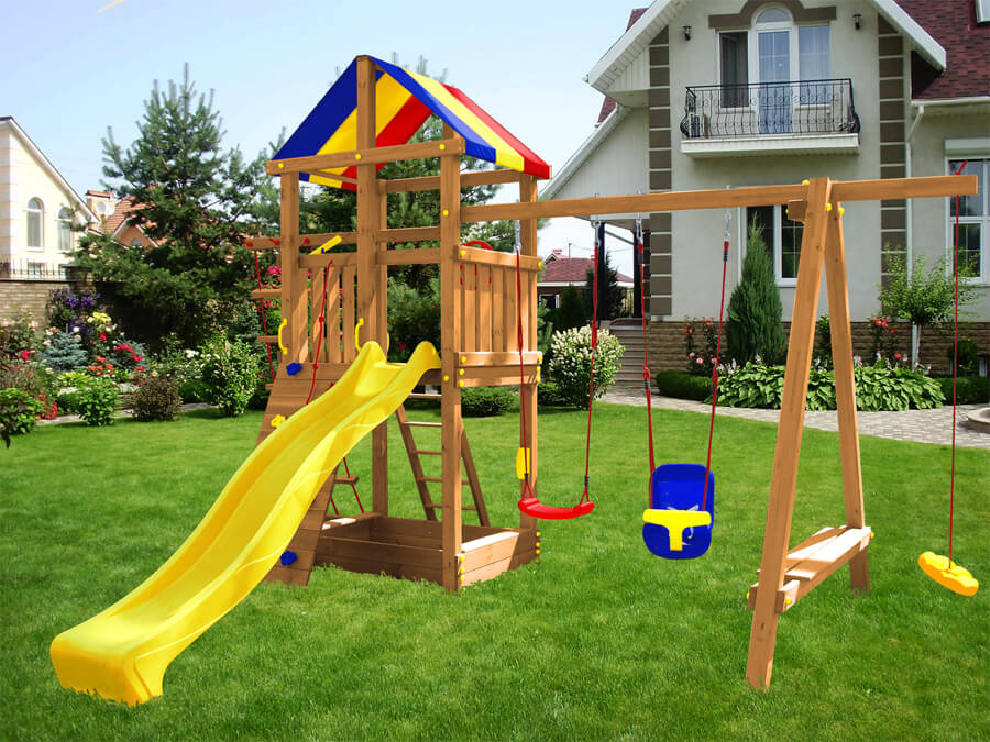 Обращаем Ваше внимание, что фактический цвет детской площадки может отличаться от представленных фото на сайте. Специфика окраски нетоксичными пропитками и красителями допускает отклонения в цветовой гамме отгружаемых изделий. Также обратите внимание, что фактический цвет может отличаться из-за цветопередачи устройства на котором Вы смотрите фото.