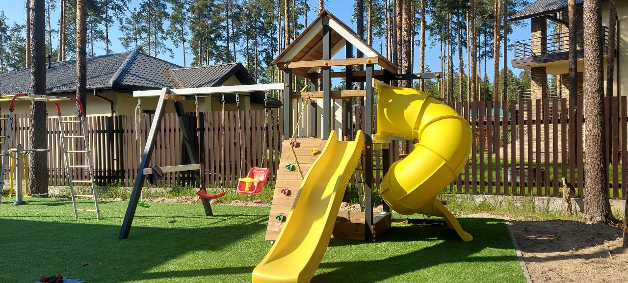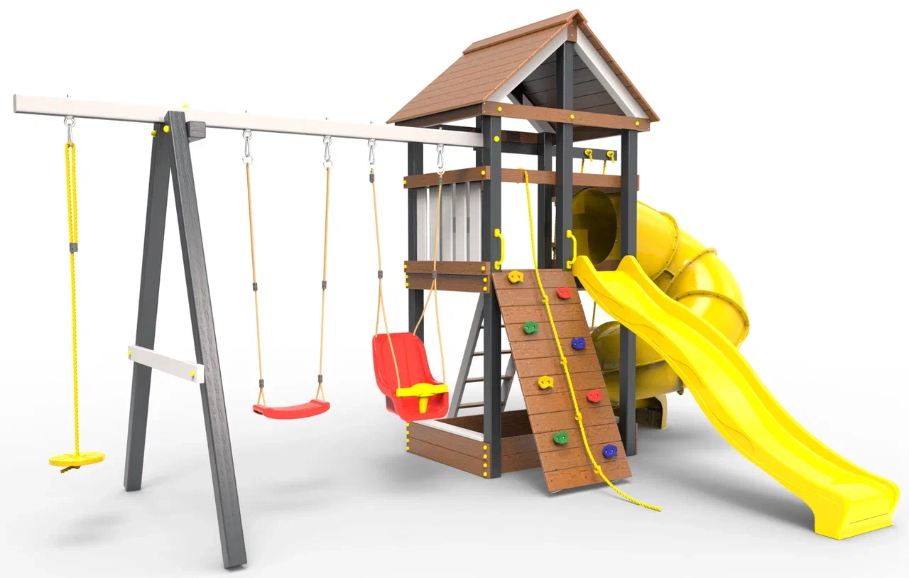 Обращаем Ваше внимание, что фактический цвет детской площадки может отличаться от представленных фото на сайте. Специфика окраски нетоксичными пропитками и красителями допускает отклонения в цветовой гамме отгружаемых изделий. Также обратите внимание, что фактический цвет может отличаться из-за цветопередачи устройства на котором Вы смотрите фото.