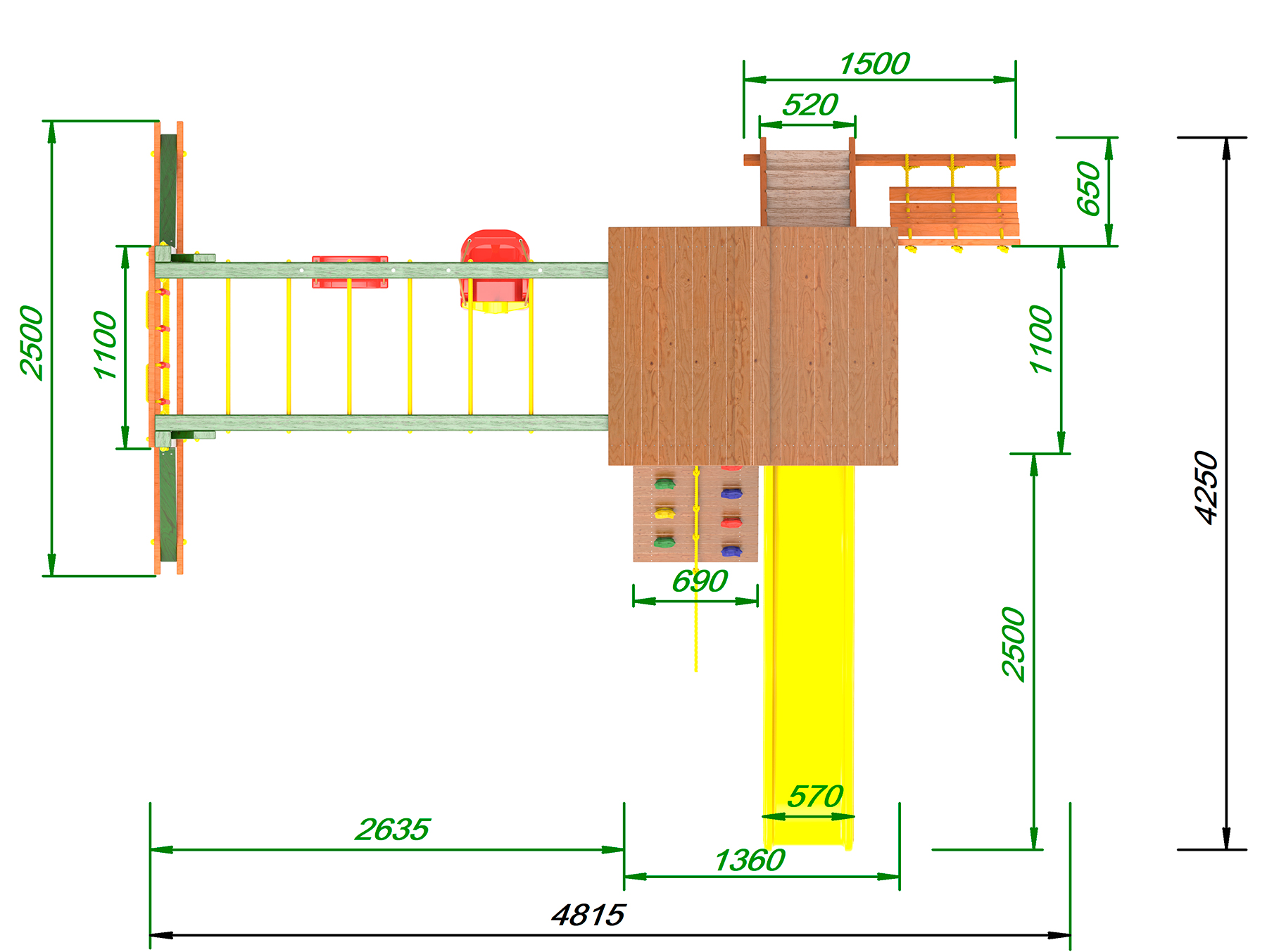 Обращаем Ваше внимание, что фактический цвет детской площадки может отличаться от представленных фото на сайте. Специфика окраски нетоксичными пропитками и красителями допускает отклонения в цветовой гамме отгружаемых изделий. Также обратите внимание, что фактический цвет может отличаться из-за цветопередачи устройства на котором Вы смотрите фото.