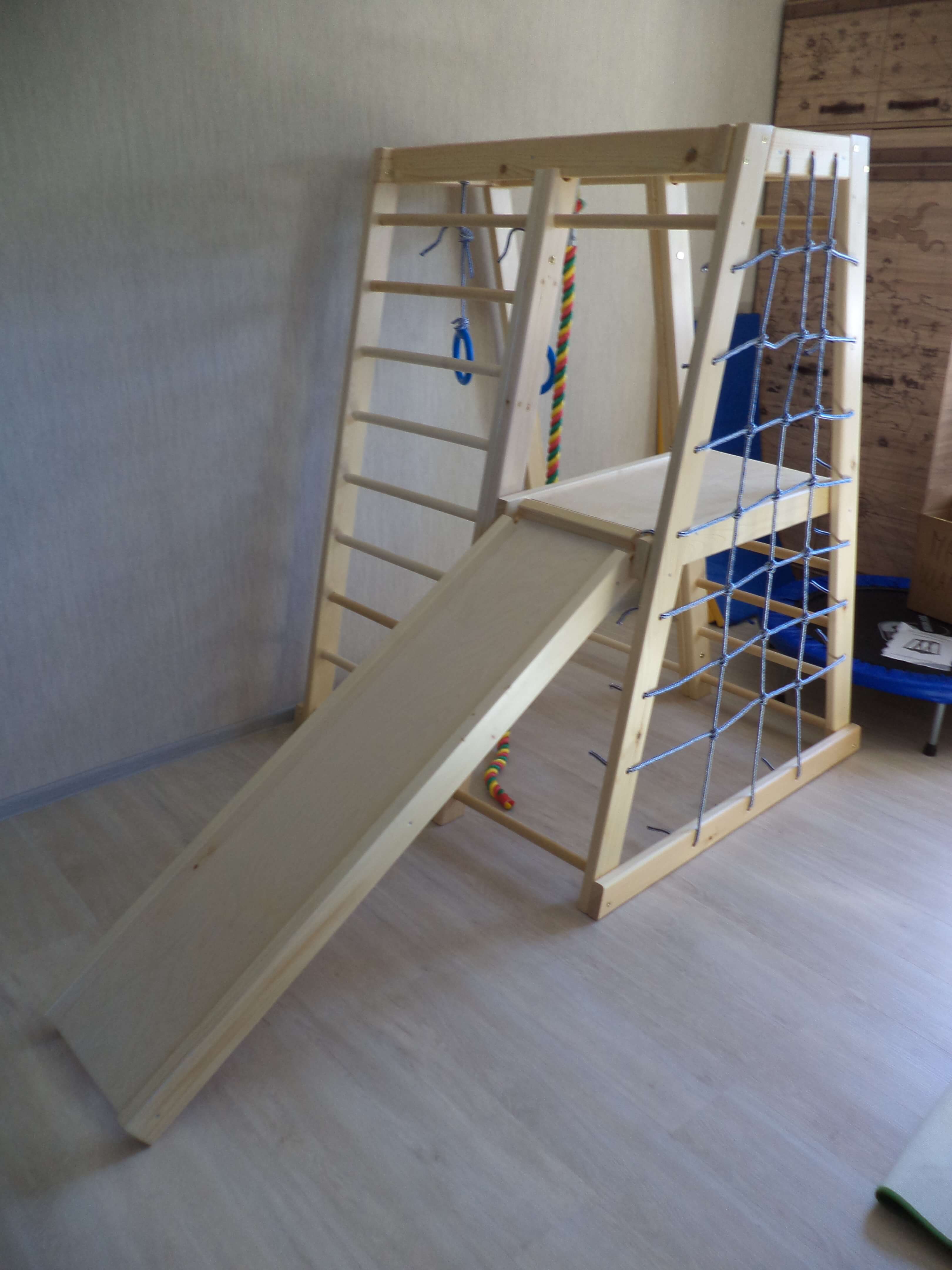 Все детали и крепления имеют гладкие безопасные края, по вашему желанию их покроют мебельным лаком для повышения износостойкости конструкции.