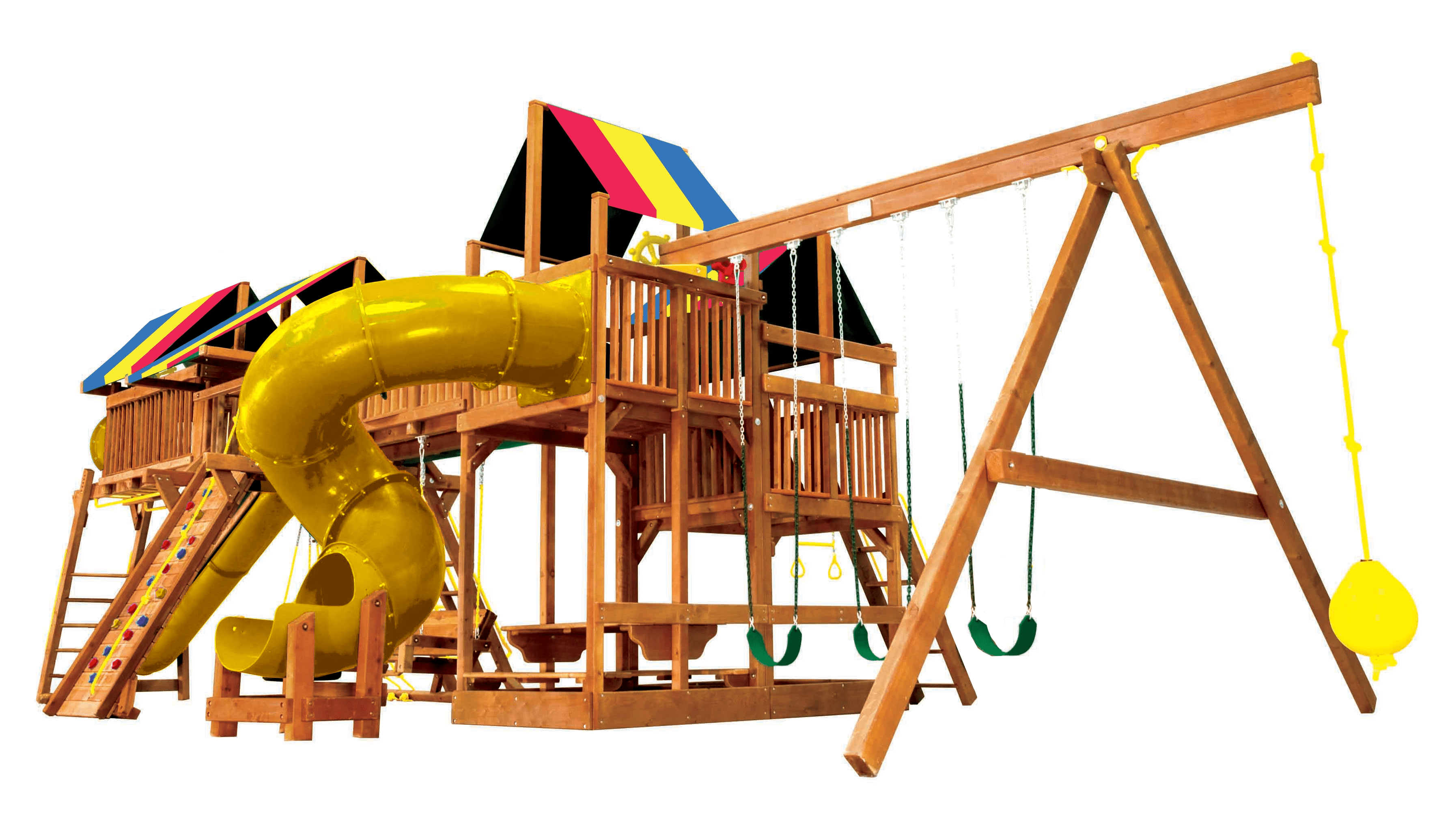 Детская игровая площадка Кинг Конг Дабл Вамми восхищает своей величественностью. Множество игровых зон: наблюдательные вышки, горки, пространство для лазания и огромное разнообразие качелей – дети будут в восторге! Такая игровая площадка будет гордостью любого загородного дома и точкой притяжения всех гостей, как маленьких, так и взрослых. Высота игровых платформ 2,19м, настоящая крепость для игр.