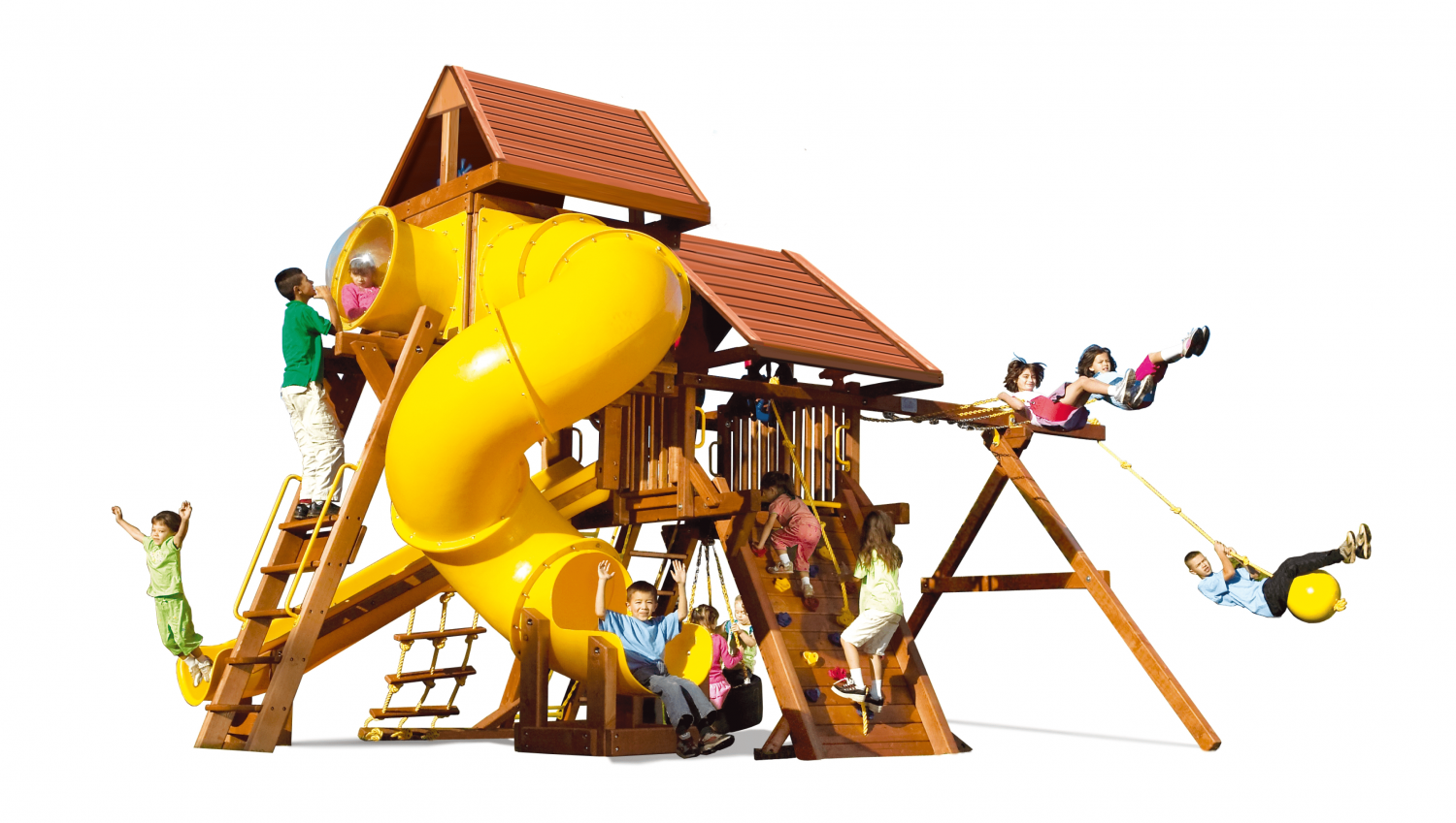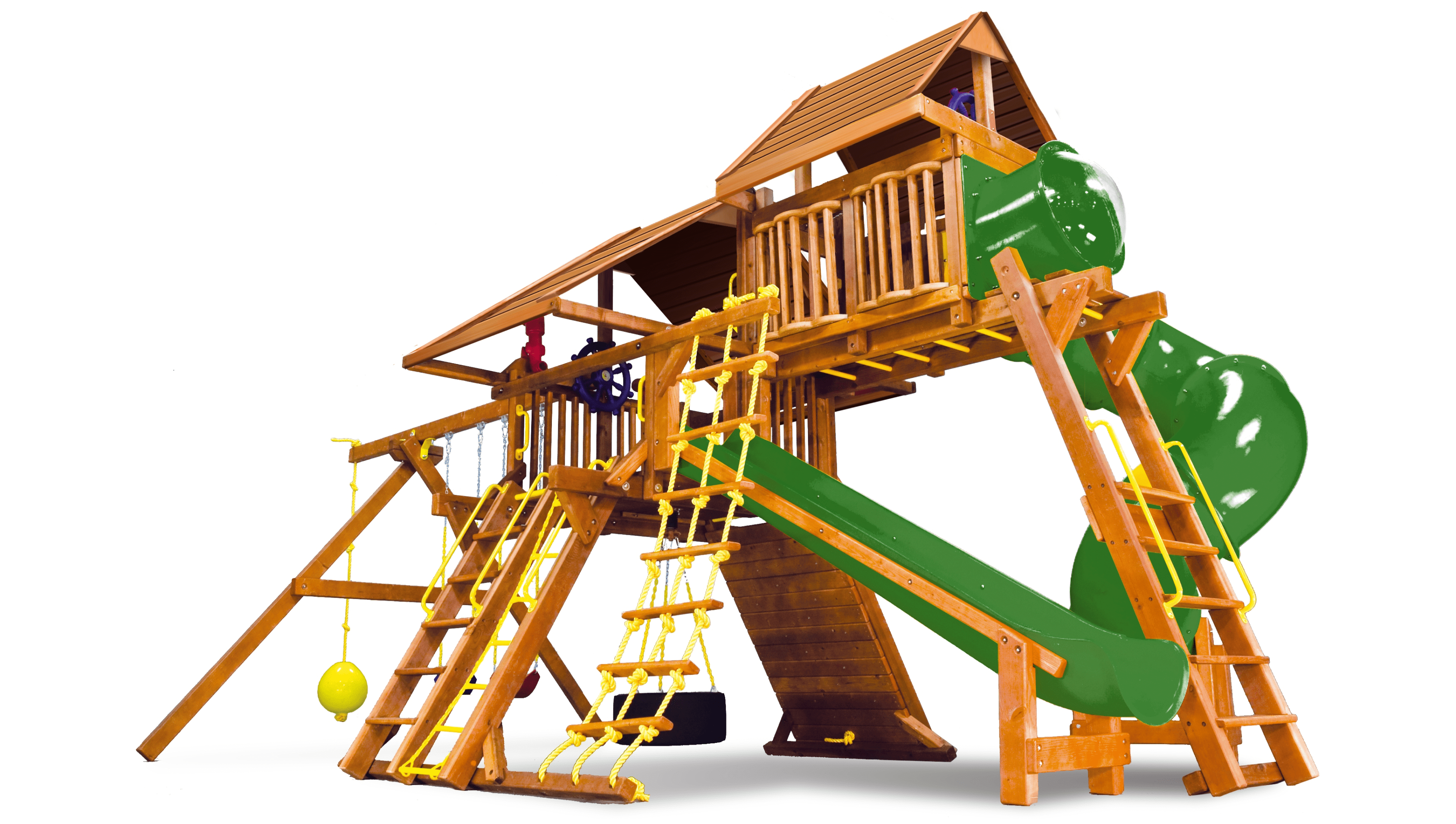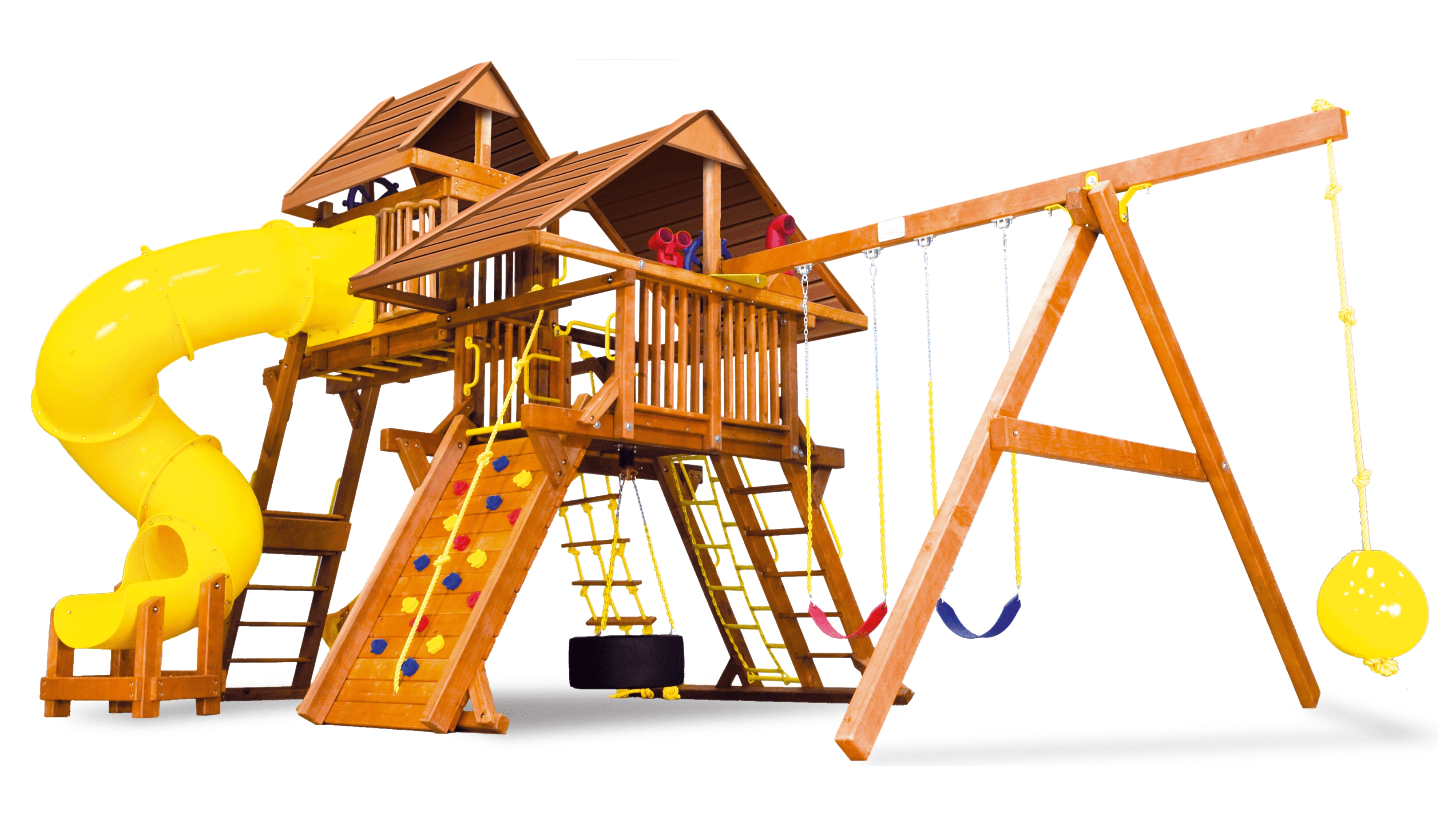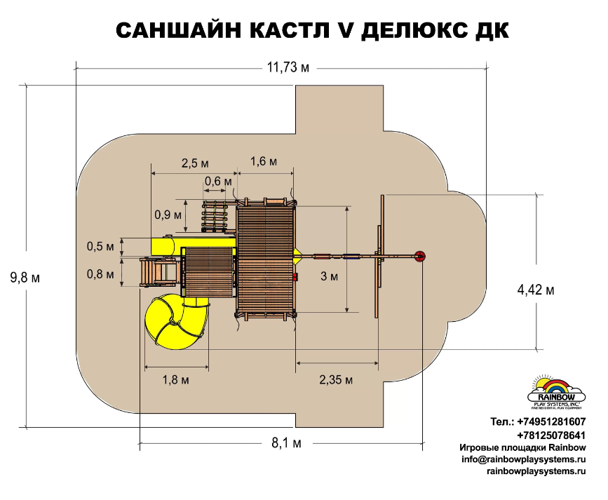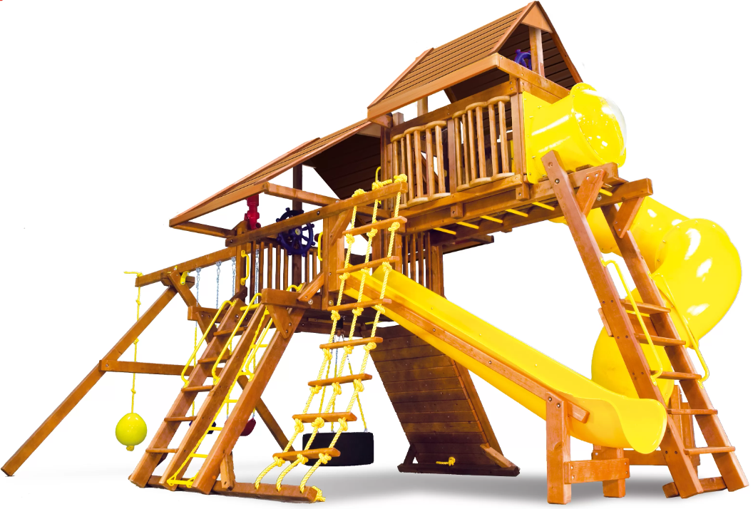 Саншайн Кастл V Делюкс ДК это максимальная комплектация данного комплекса. Здесь есть все для, что только дети могут себе вообразить. Дизайн Саншайн Кастла V отлично подойдет как загородному участку, так и общественному парку. Все блоки сделаны максимально безопасно и надежно. Также всегда можно будет еще разнообразить детям игры, например докупив другие качели или даже повесить под рукоходом снаряжение для тренировок ниндзя!