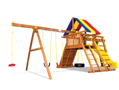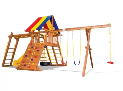 Деревянная площадка Циркус Кастл III Тент подойдет для семьи из 2-3 детей. Данный комплекс имеет рукоход для активных и подвижных детей. Также в комплектацию входят все необходиме игровые элементы: горка с двойной волной, 2 качели, диск-тарзанка на канате, скалодром, качель шина, смотровая вышка с биноклем и телескопом. При изготовлении Циркус Кастл III Тент используется только прошедшее 10-ти ступенчатую обработку влагоустойчивыми антисептиками дерево, сорта кедр.