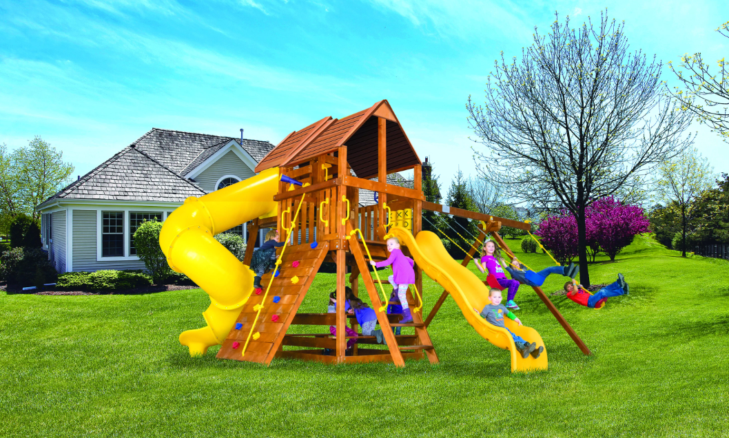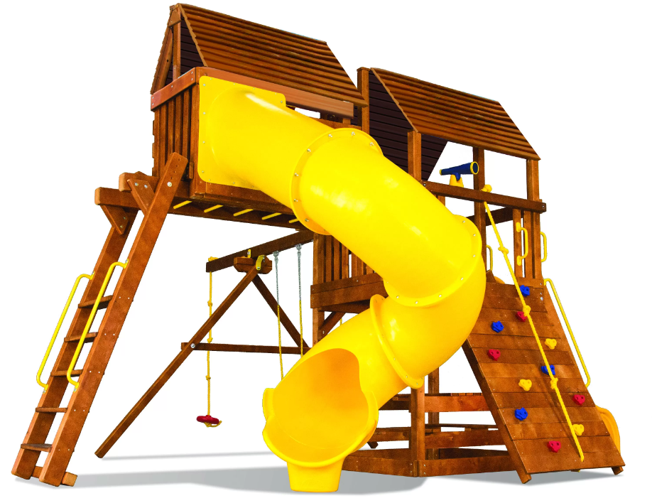 Площадка Циркус Фанхаус V ДК имеет максимальную комплектацию из возможных в серии Циркус. Здесь есть все о чем только могут мечтать дети. Спиральная горка с поворотом 270 градусов, горка двойная волна, 2 домика, скалодром, качели, встроенный столик со скамейками или песочница. Данный комплекс станет украшением любого загородного участка и отлично впишется даже в самый изысканный ландшафтный дизайн. При это он не занимает много места и может быть установлен на любую ровную поверхность.