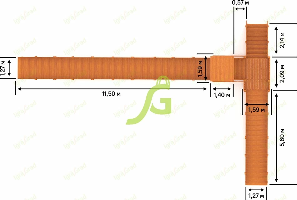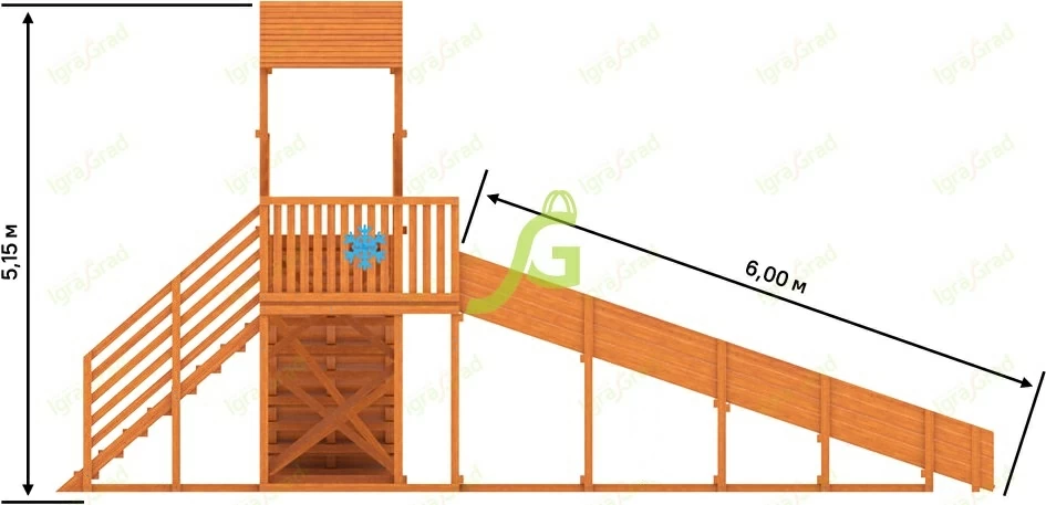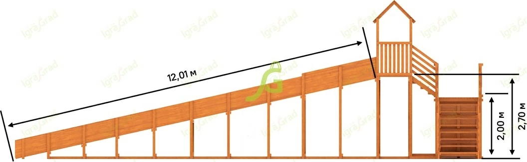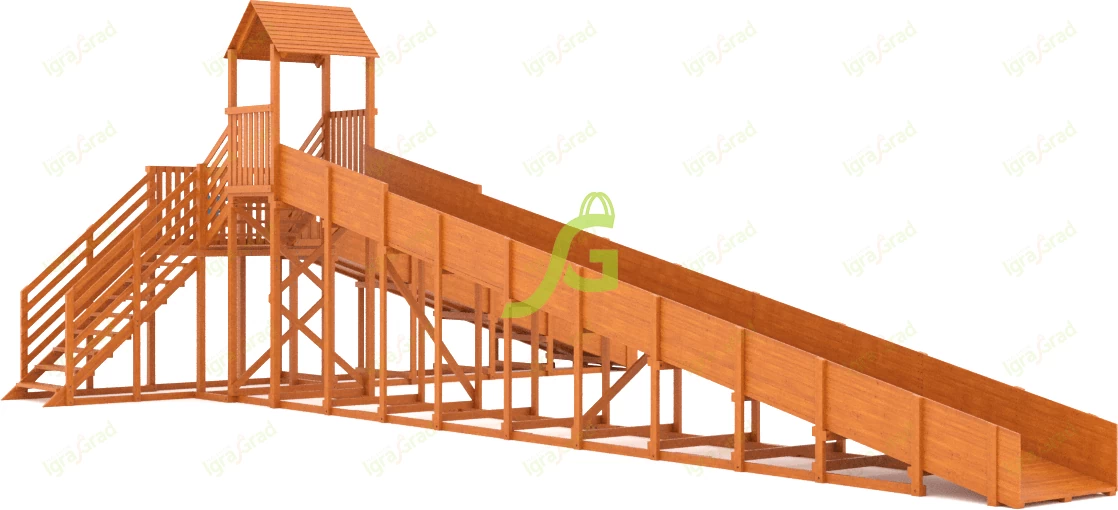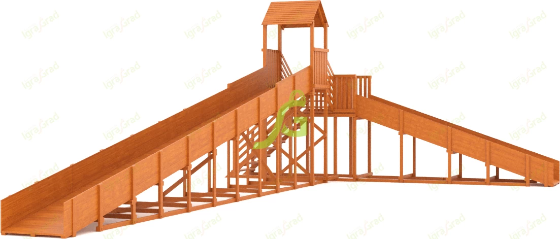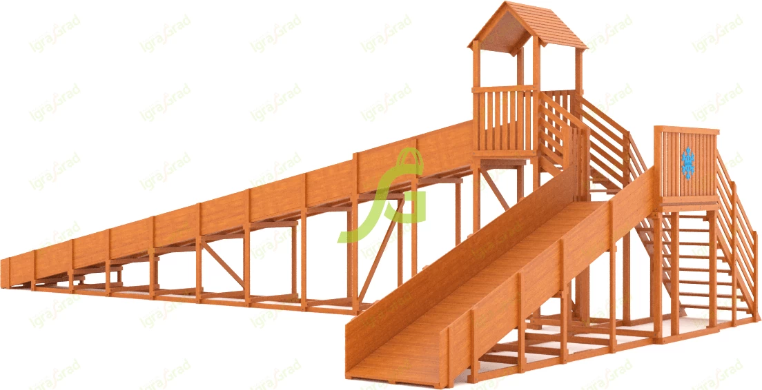 Характеристики зимней деревянной горки "Snow Fox 12 м" с двумя скатами мод.2
