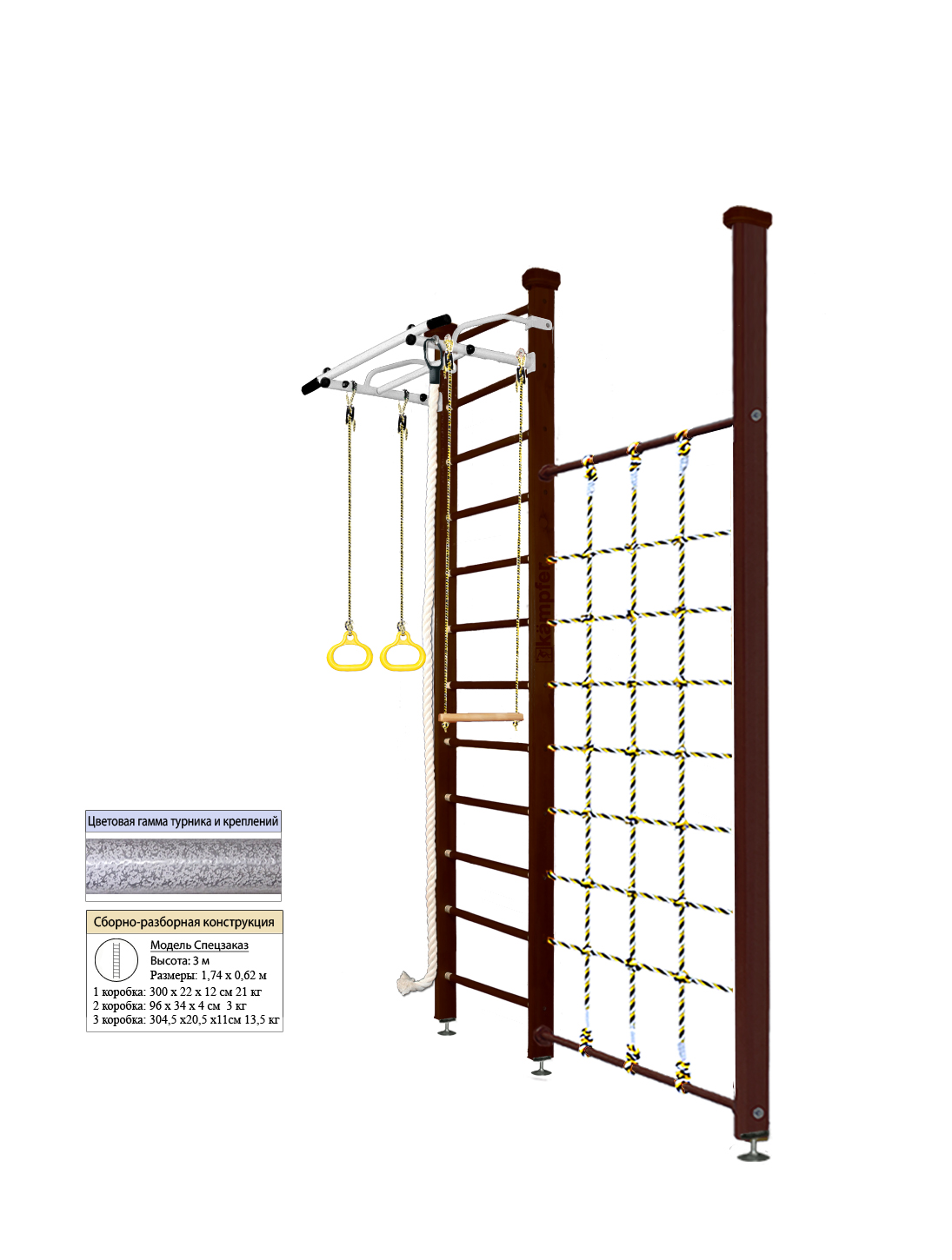 — Общая ширина шведской стенки включая стойку с сеткой и выступ рукоятки турника: 174 см