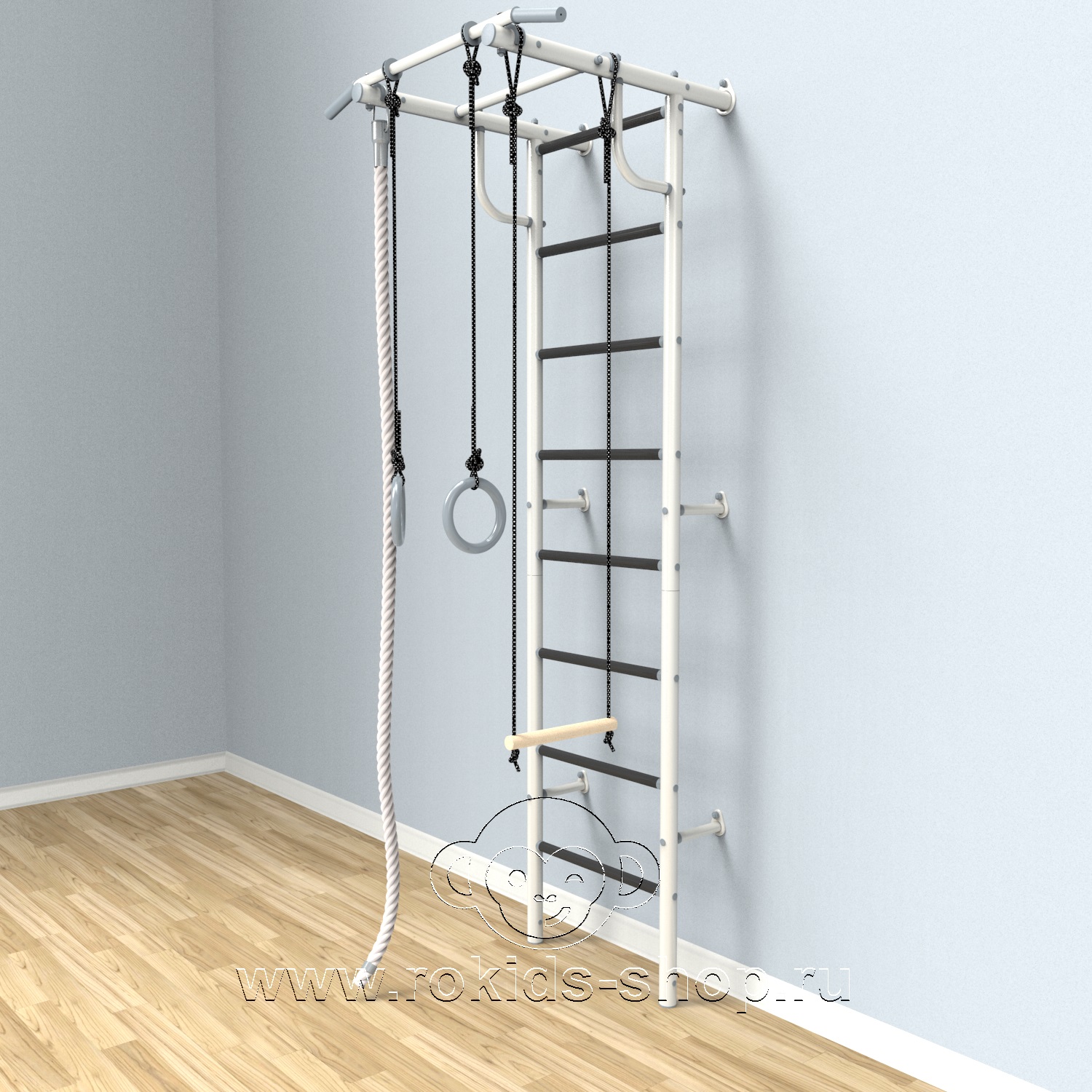 - Комплектация: шведская стенка, кольца гимнастические, канат, трапеция, веревочная лестница