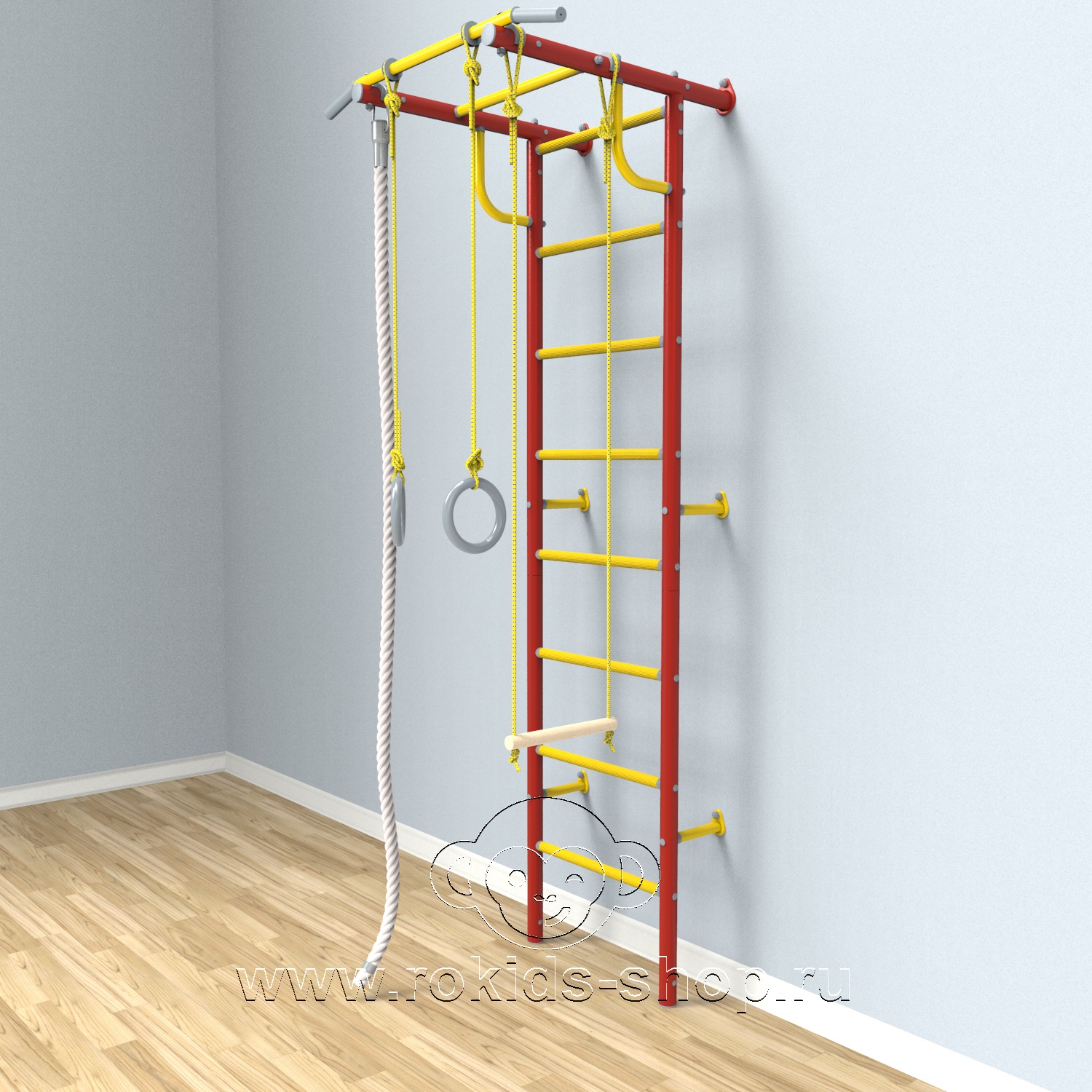 - Комплектация: шведская стенка, кольца гимнастические, канат, трапеция, веревочная лестница