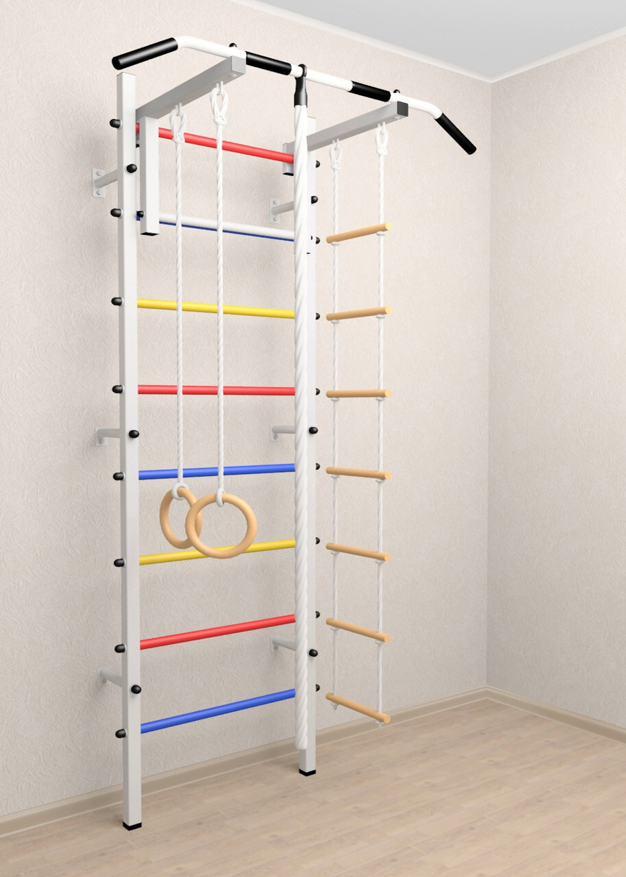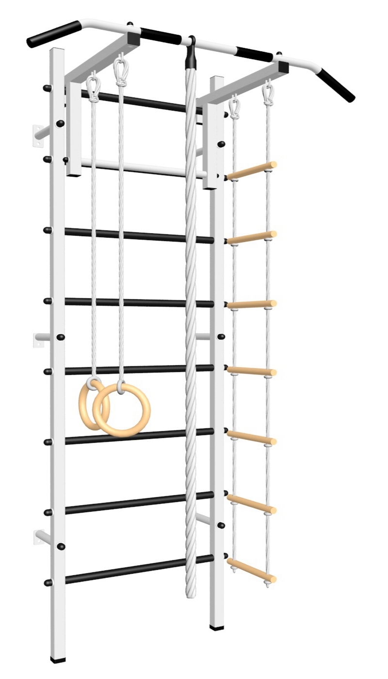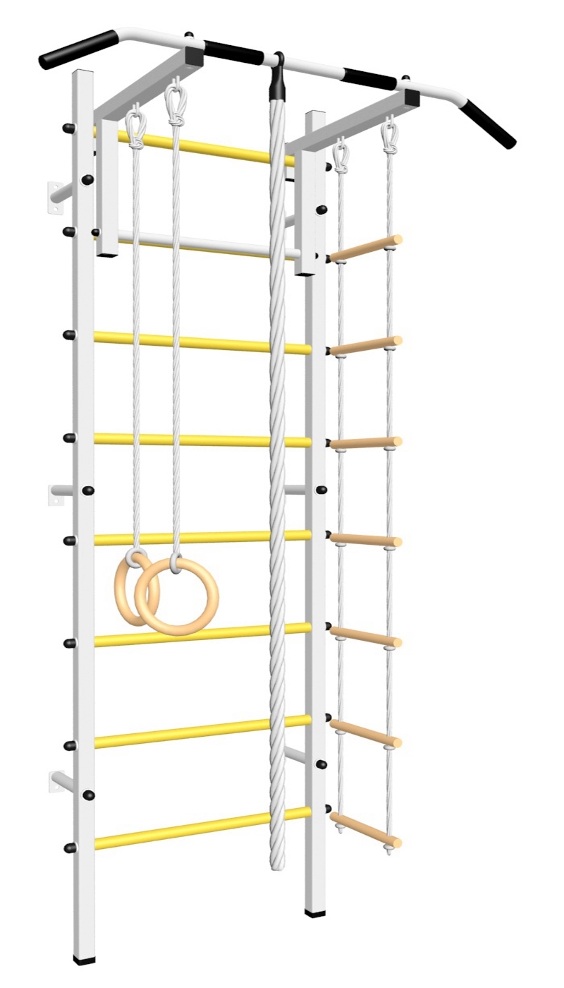 - Комплект: канат с крепежом 2,3 м, кольца гимнастические деревянные, лестница веревочная 350*150*250мм 2,90кг