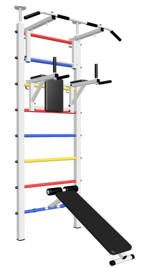 - Цвет покраски: белый; Цвет фурнитуры: черный; Цвет ступеней: черный, разноцветный, синий, желтый, красный, белый.