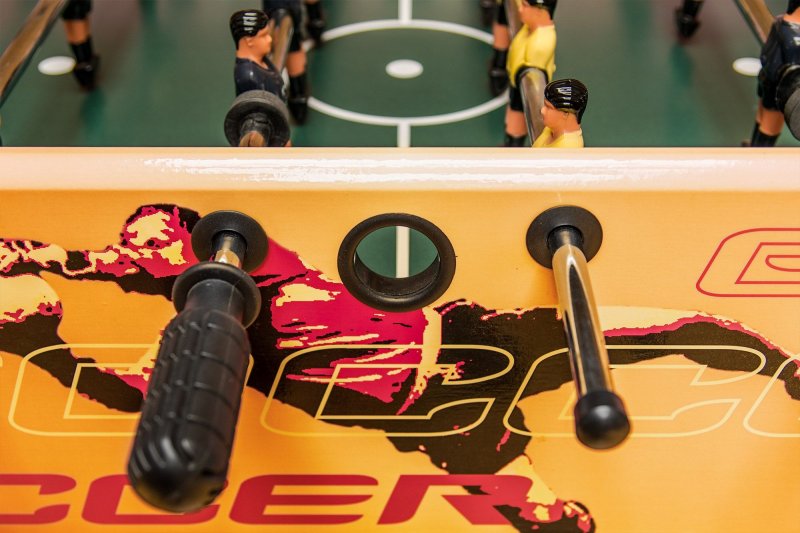 Этот кикер идеально подойдет для веселого и интересного времяпровождения. Яркий дизайн стола, выполненный в классических футбольных цветах, украсит интерьер любой игровой комнаты.