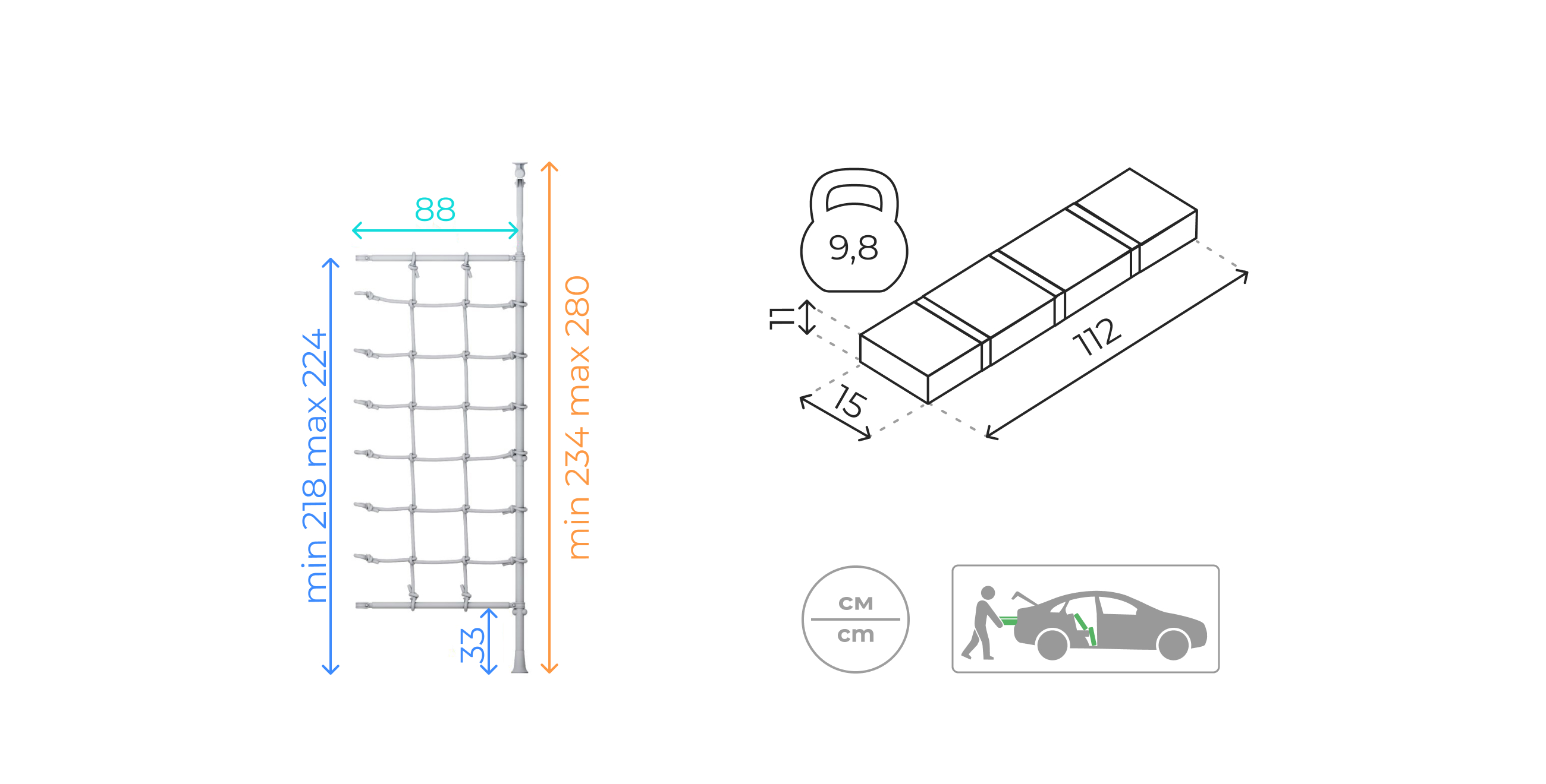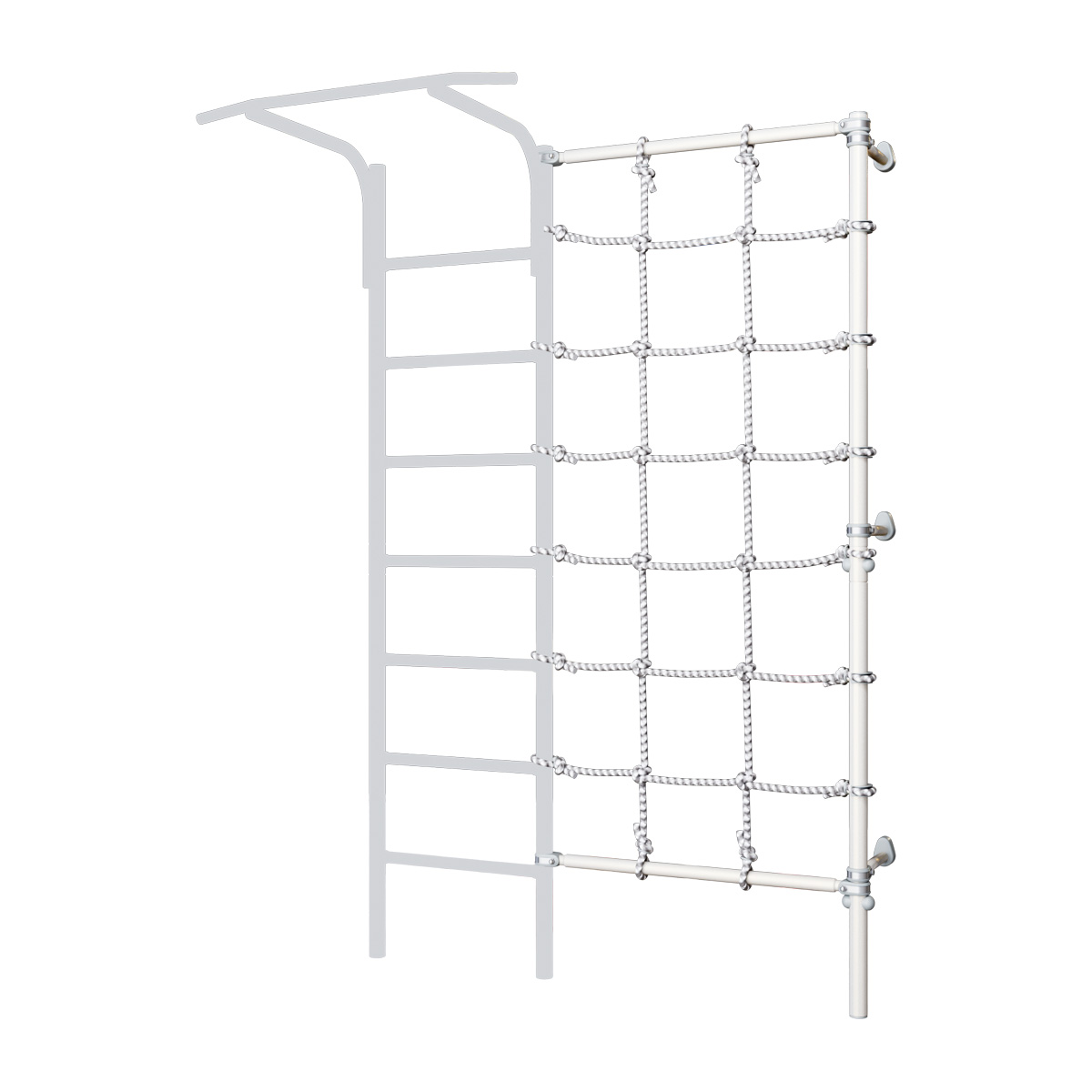 Комплект с канатным лазом подойдет к пристенному детскому спортивному комплексу ROMANA с 8 ступенями. Его можно разместить как слева, так и справа от лестницы. Лаз добавит разнообразия к веселым играм детей, даст больше возможностей для упражнений. Он сделан из шнура повышенной прочности. Комплект фиксируется с помощью специальных крепежей.