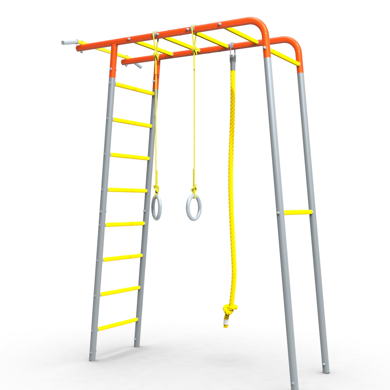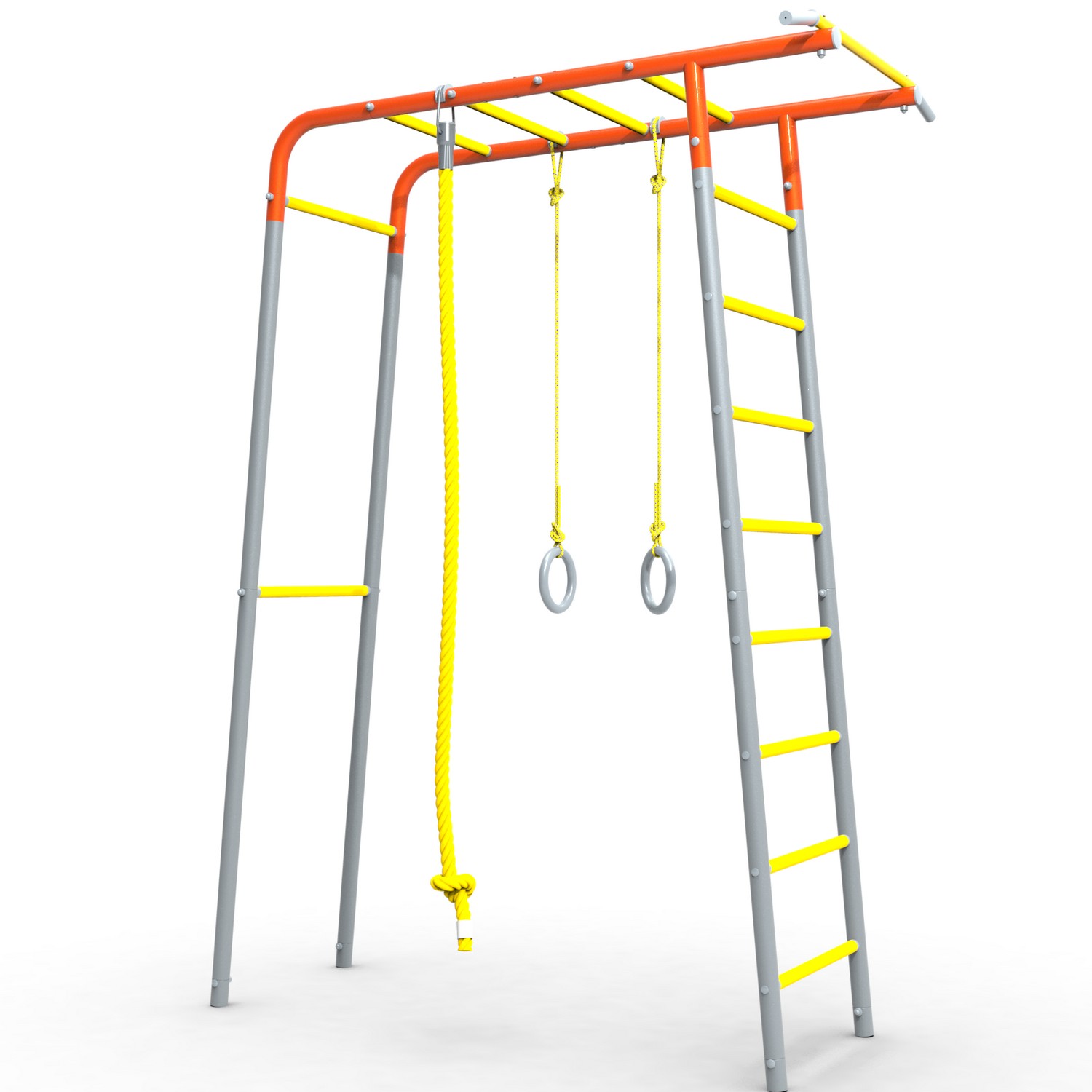 - Комплектация Рукоход, турник, канат, кольца гимнастические, ПВХ ступени